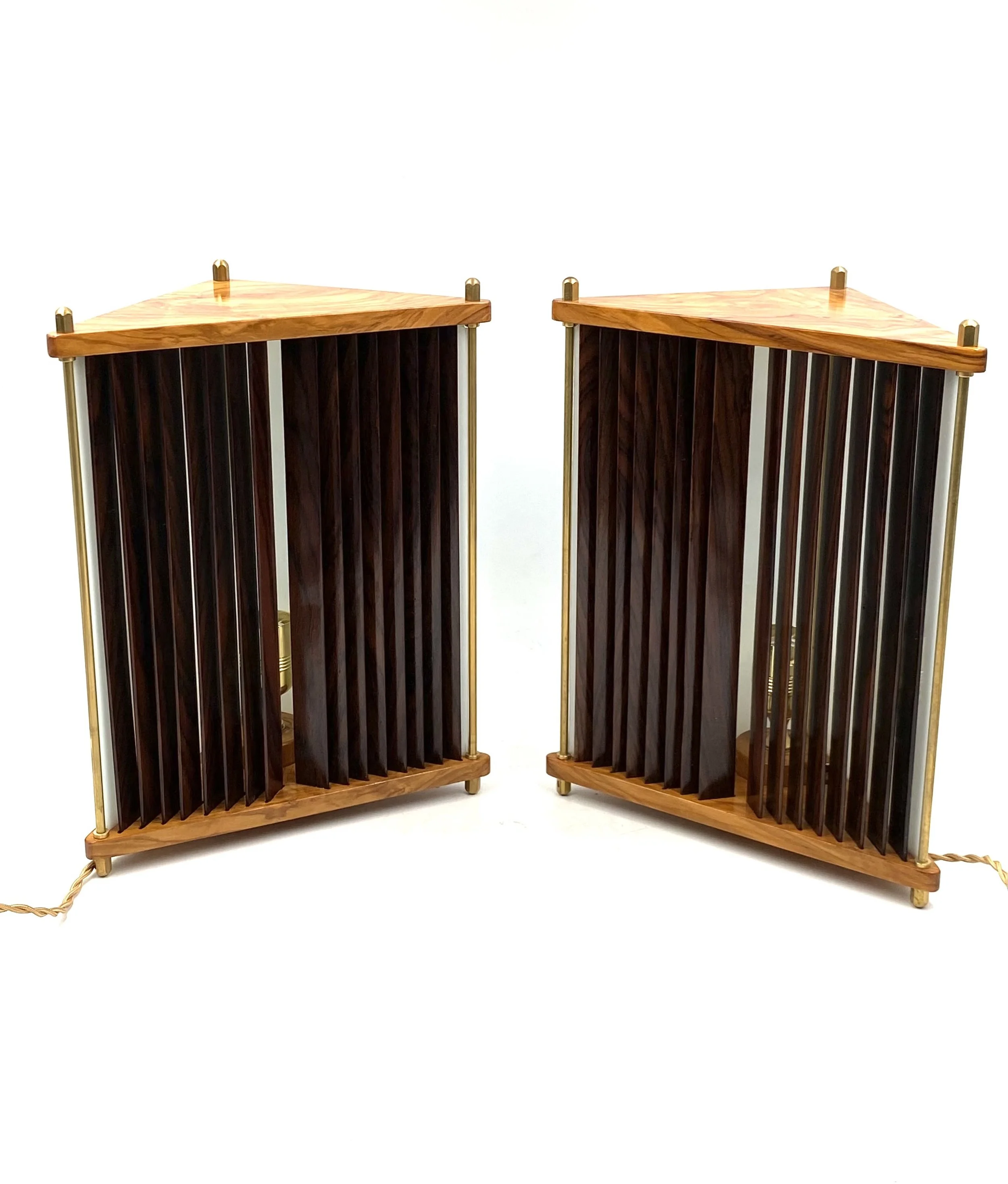 2 Palisander and brass Table lamps designed by Leonardo Mosso architect.